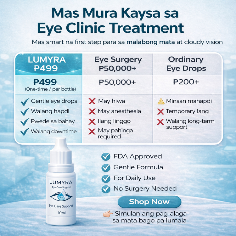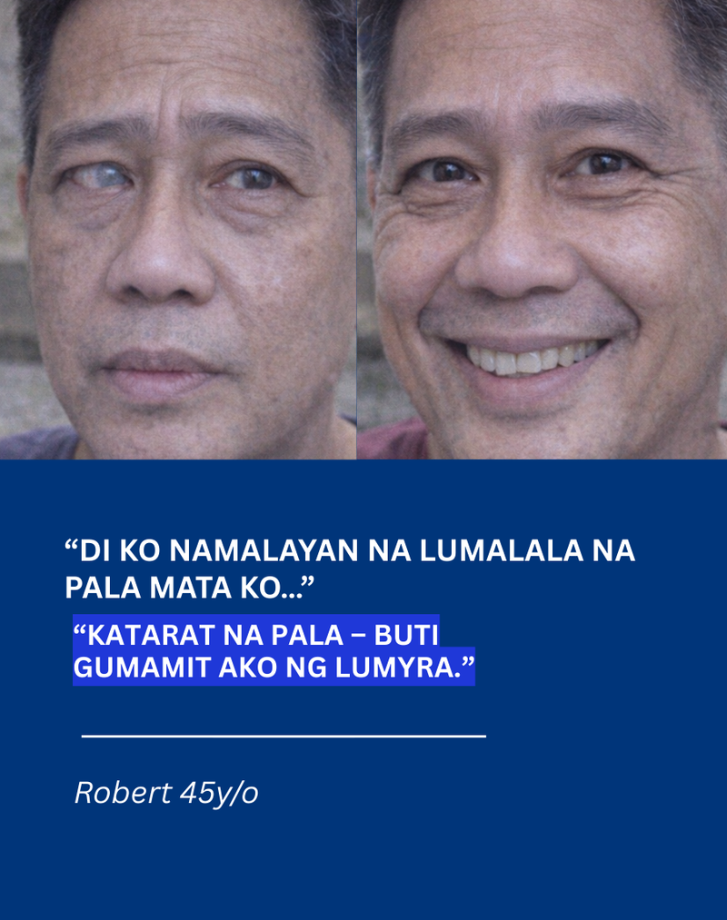 100,000+ Filipinos with katarata, pugita sa mata, glaucoma at panlalabo are now using LUMYRA for daily eye support solution.Because when your vision starts to fade, you don’t ignore it — you support it.